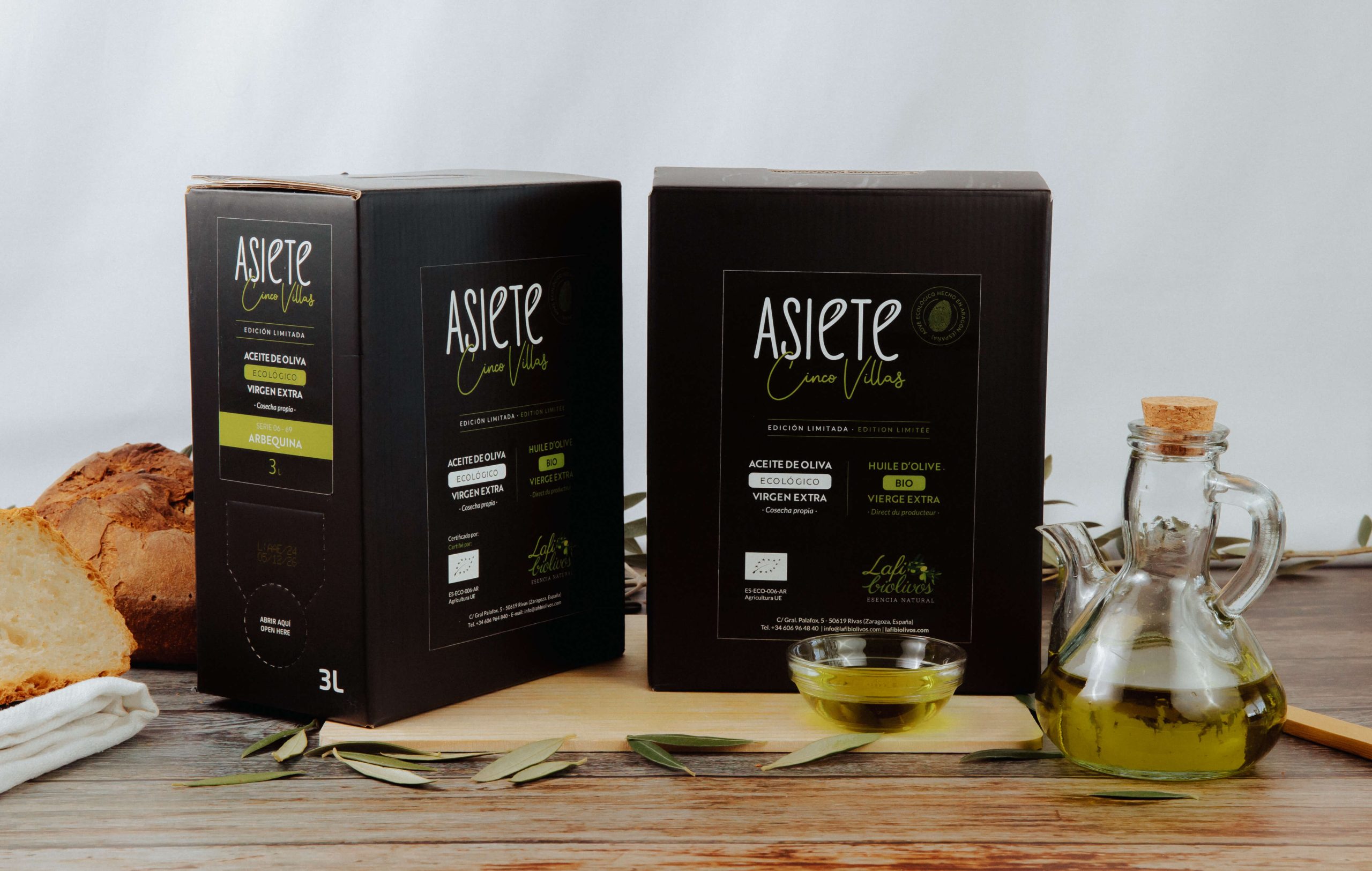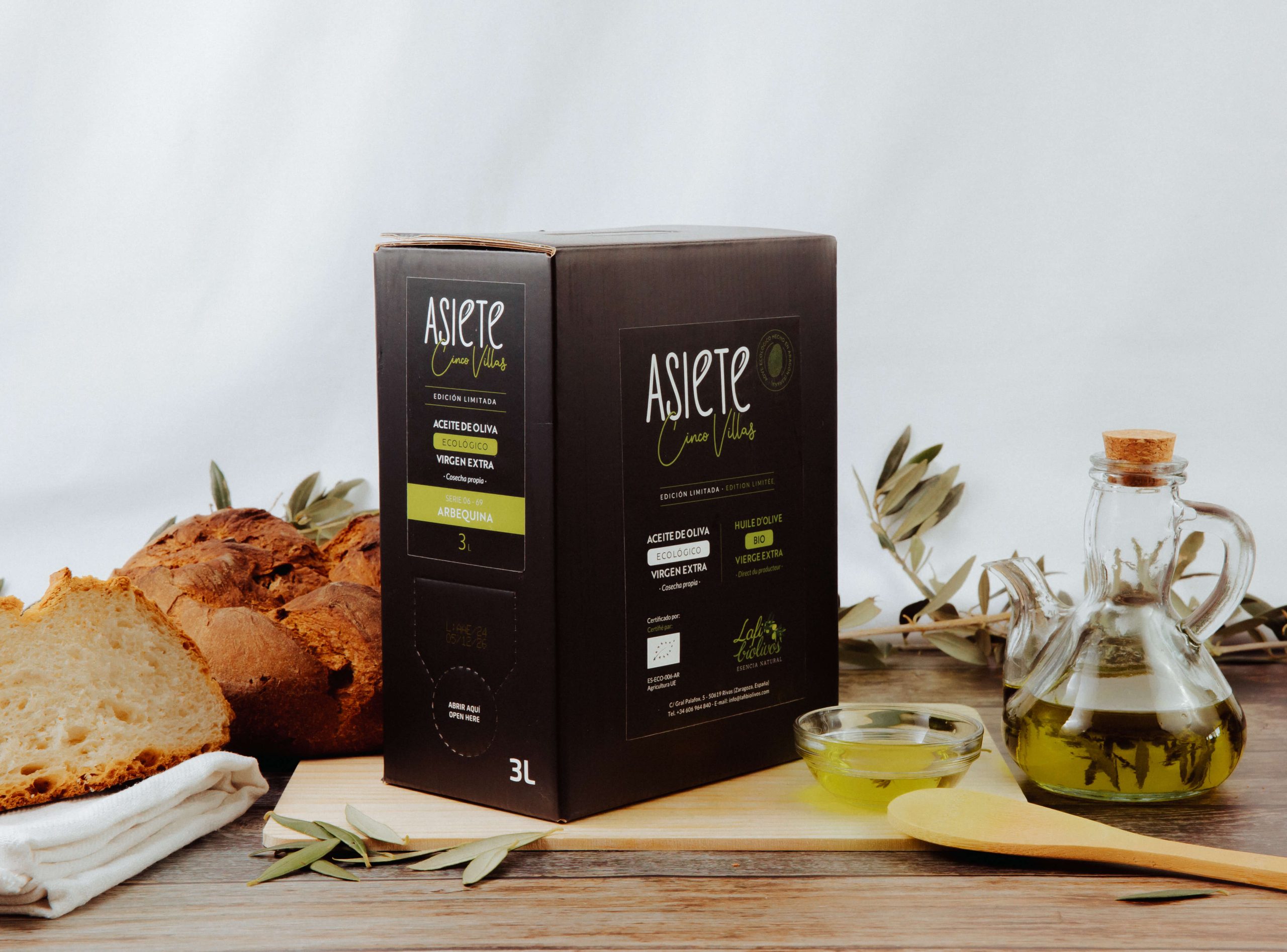 El aceite de oliva virgen extra ecológico de la variedad Arbequina se comercializa en envases de vidrio de 25 y 50cl y en bag in box de 3L. Este último envase ayuda a conservar durante más tiempo las propiedades más saludables del producto al no estar en contacto con oxígeno y luz y es más compacto por lo que ocupa menos espacio.